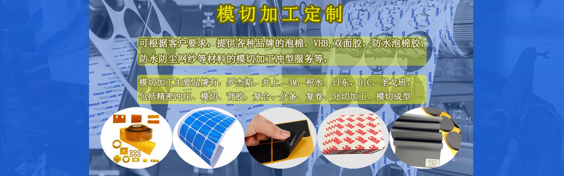 根据客户要求,提供各种品牌的泡棉材料模切与背胶服务,模切包括精密冲压、模切、背胶,复合、分条、复卷、分切加工、模切成型等。